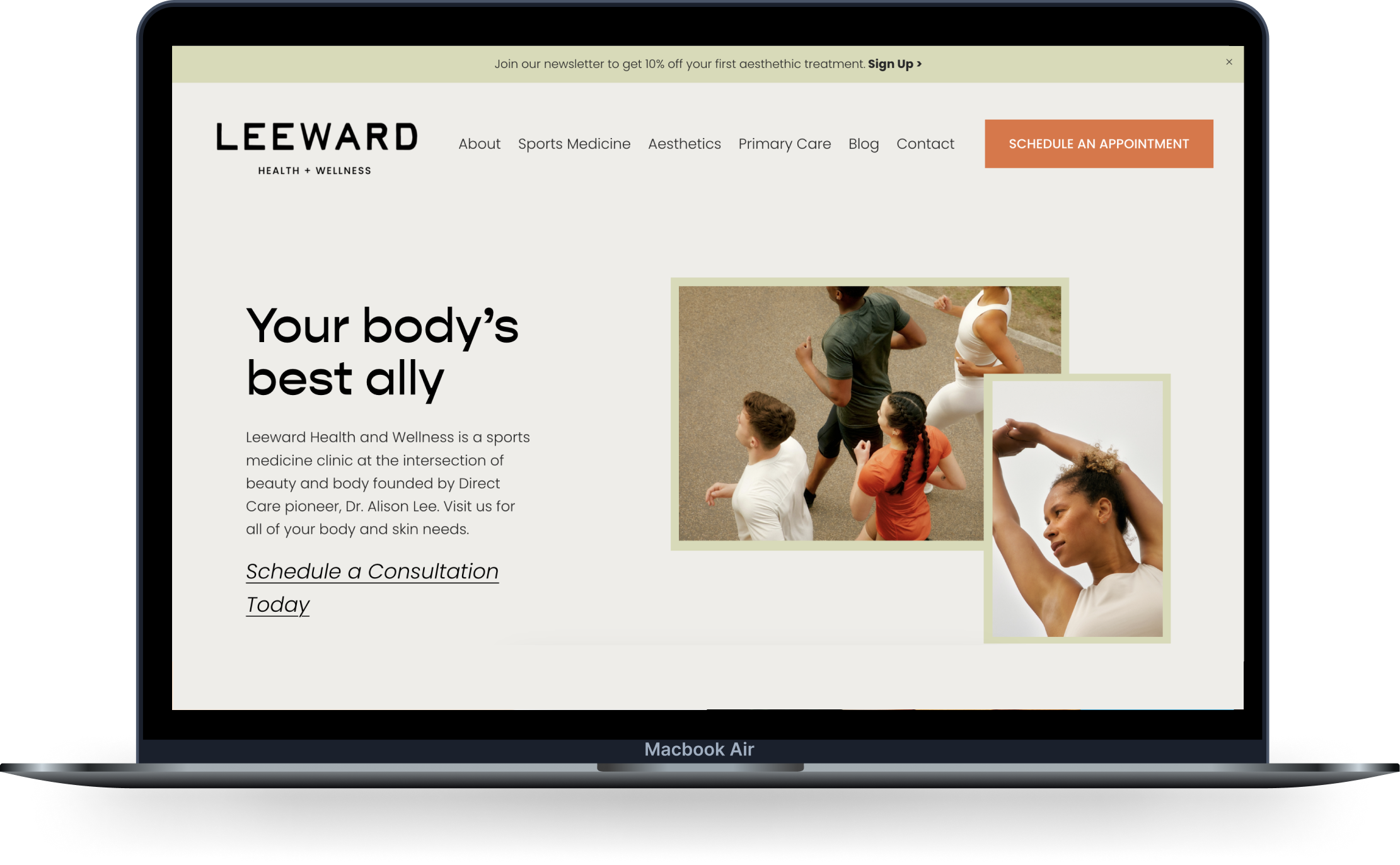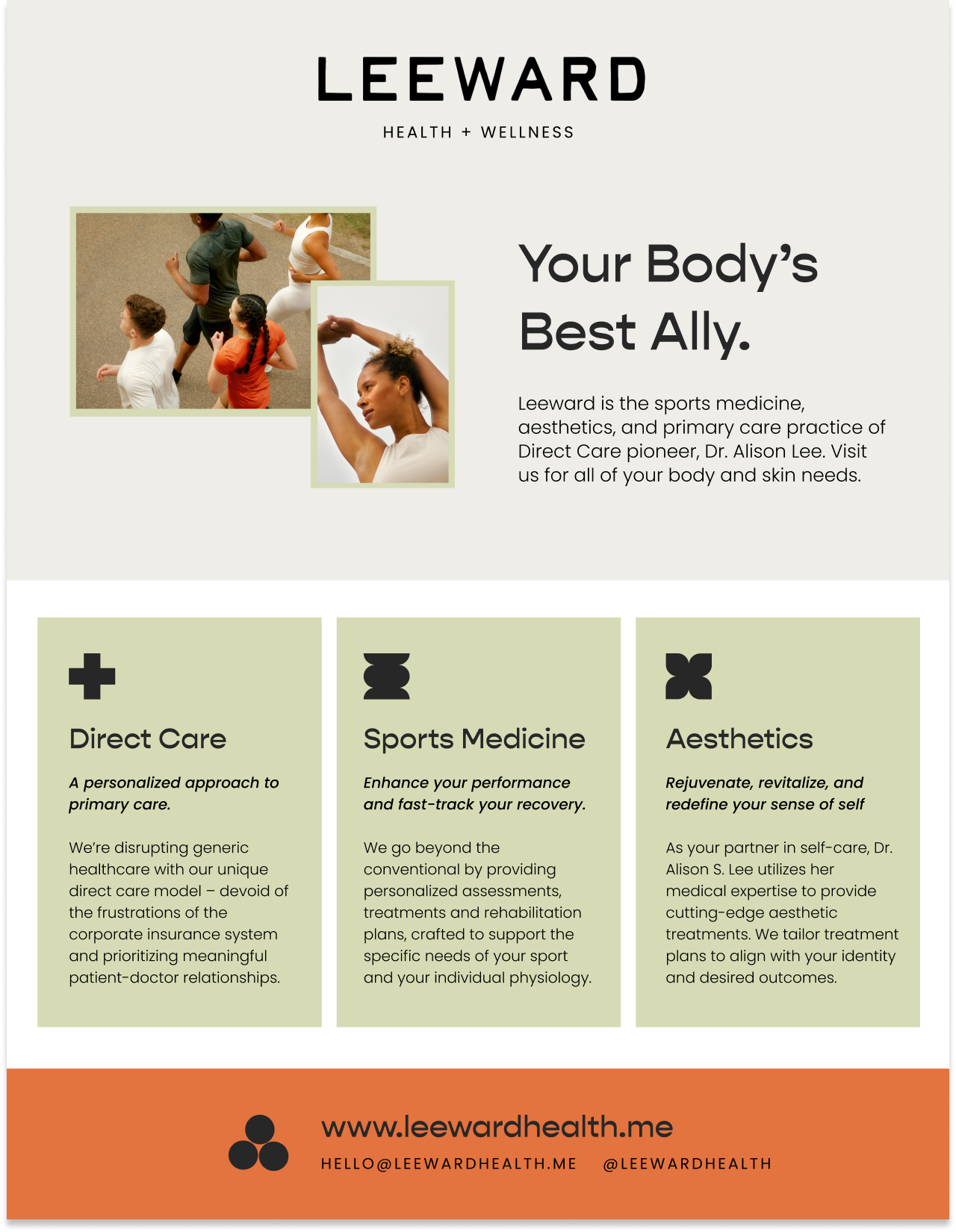 PROJECT DESCRIPTIONLeeward Health and Wellness is a sports medicine, direct care, and aesthetic services clinic founded by Direct Care pioneer, Dr. Alison Lee.